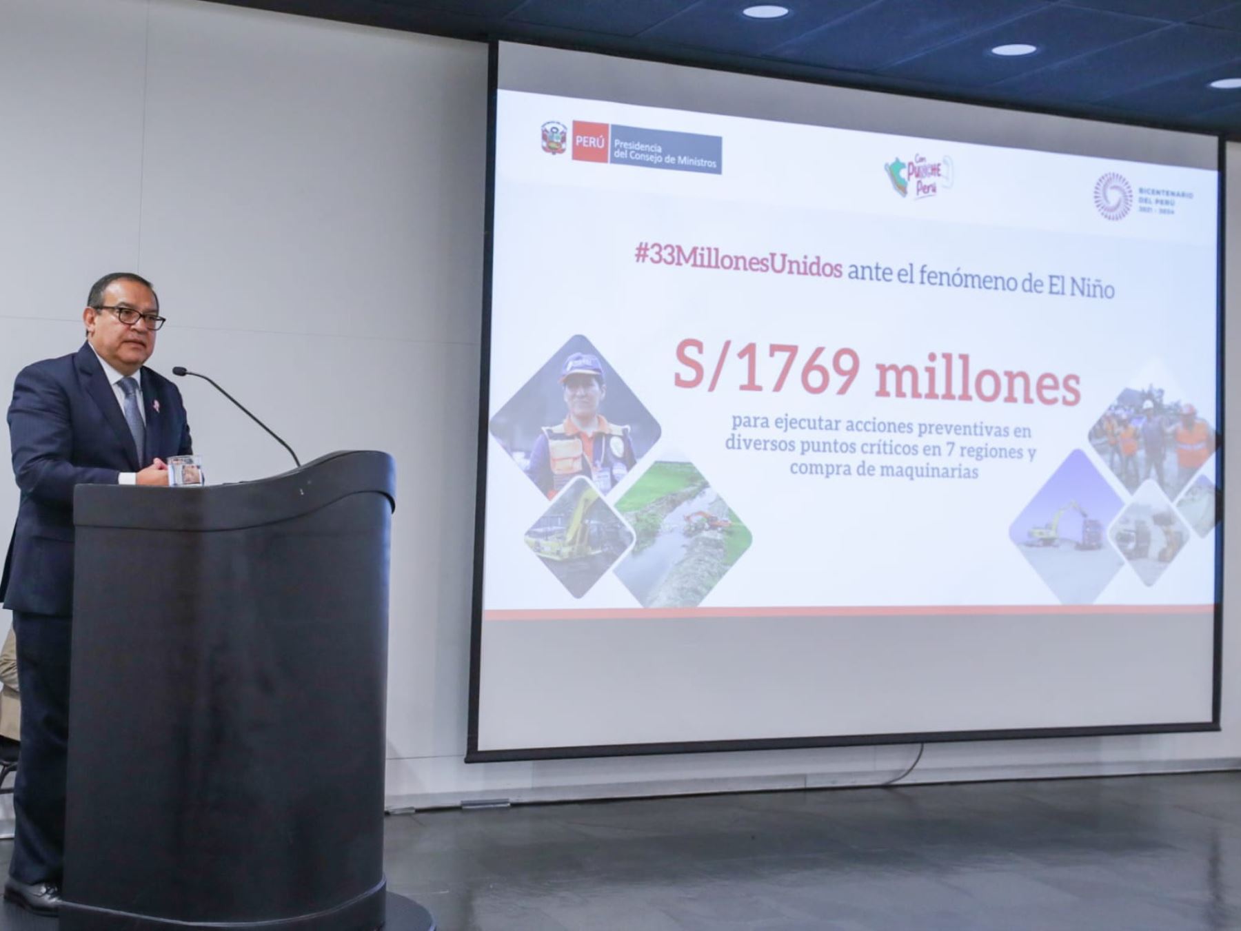 “El Fenómeno de El Niño global puede generar una crisis sanitaria, de abastecimiento y afectar a las comunicaciones. Como tomamos conciencia plena de lo que puede suceder, el gobierno destinó S/4000 millones para la prevención”, señaló el jefe del Gabinete Ministerial.