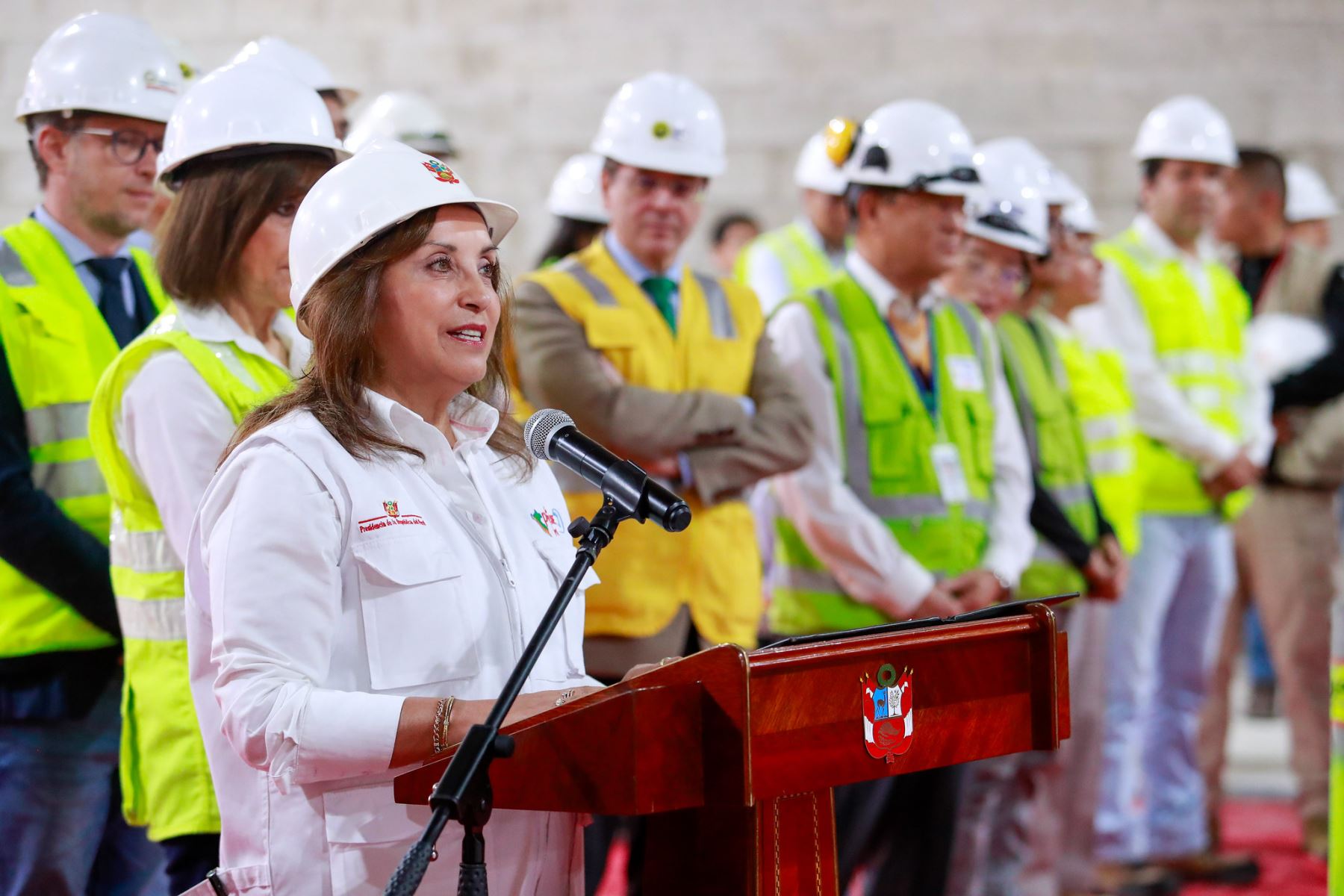 La presidenta Dina Boluarte participa en la ceremonia de inauguración de la ampliación de la capacidad de transformación de la Subestación La Pampa, ubicada en la provincia de Camaná, en Arequipa.