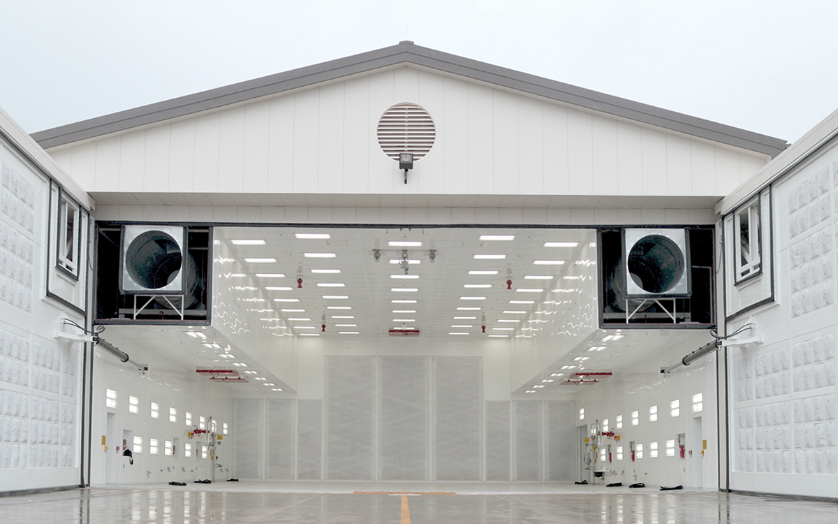 Se recomienda añadir un mínimo de 3 metros alrededor de la aeronave más grande y considerar espacio adicional para andamios o elevadores. Diseñar paredes y techos ajustados a la forma de la aeronave permite reducir costos operativos al disminuir el flujo de aire requerido.