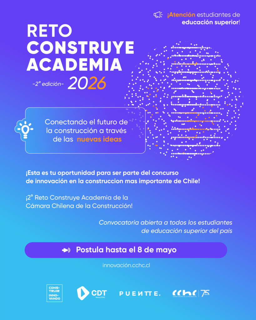 La Cámara Chilena de la Construcción (CChC), junto a la CDT, abrió la convocatoria para la segunda edición del Reto Construye Academia 2026 (RCA), una iniciativa de innovación abierta impulsada por Construir Innovando, que conecta a estudiantes de Educación Superior con los principales desafíos del sector. Tras una exitosa primera versión en 2024, que movilizó […]